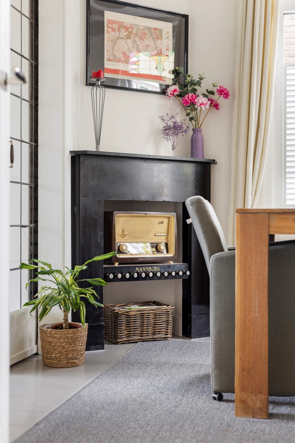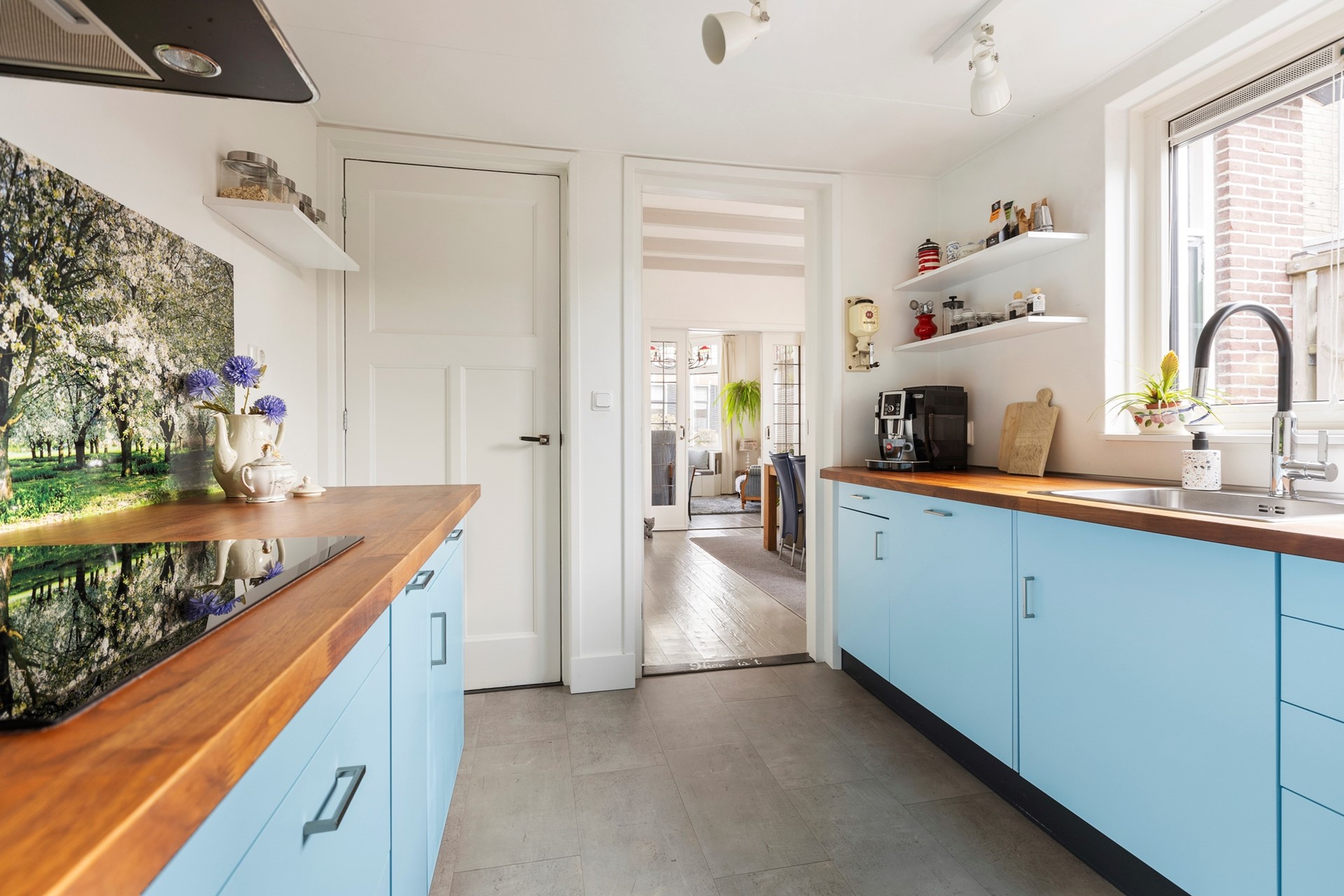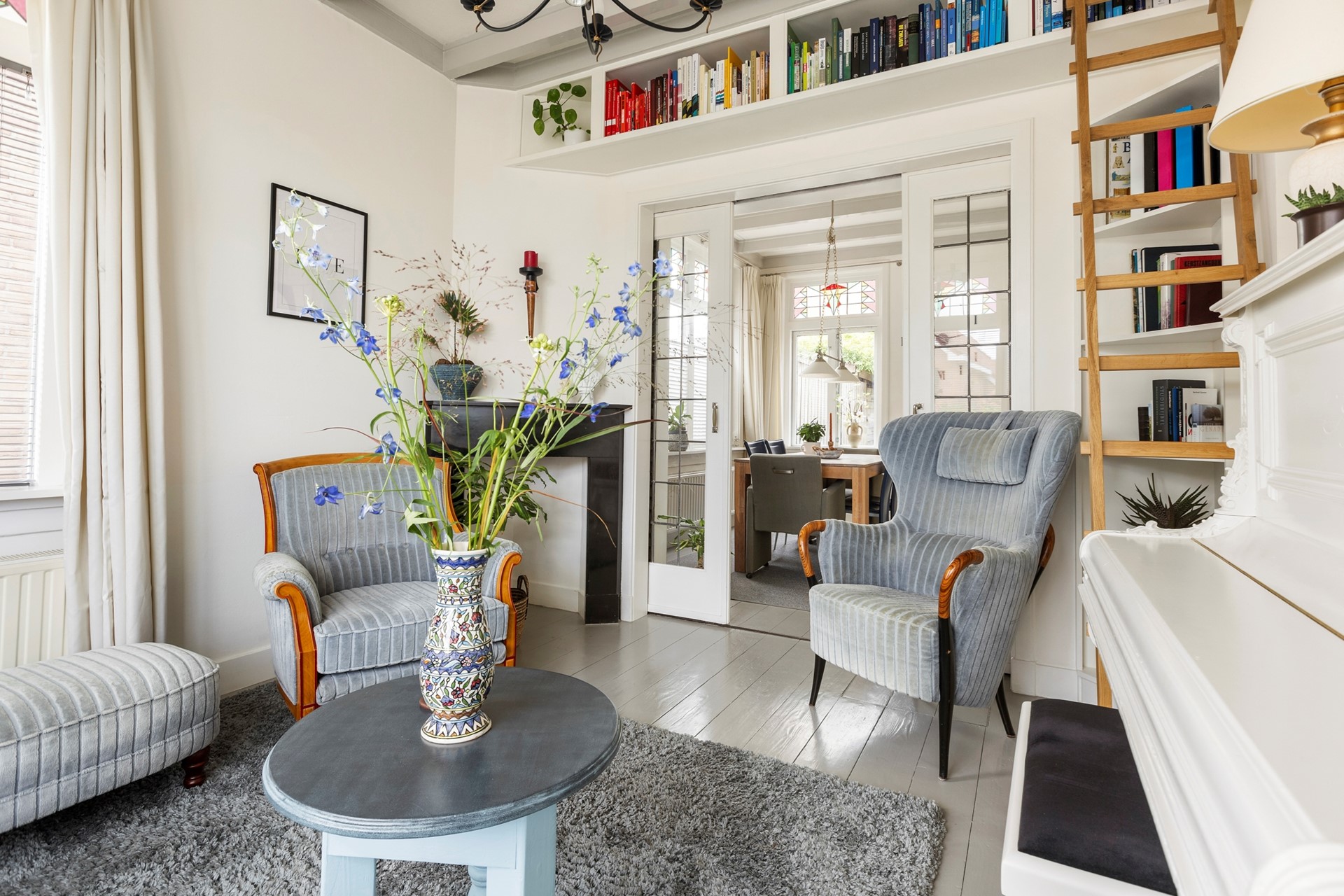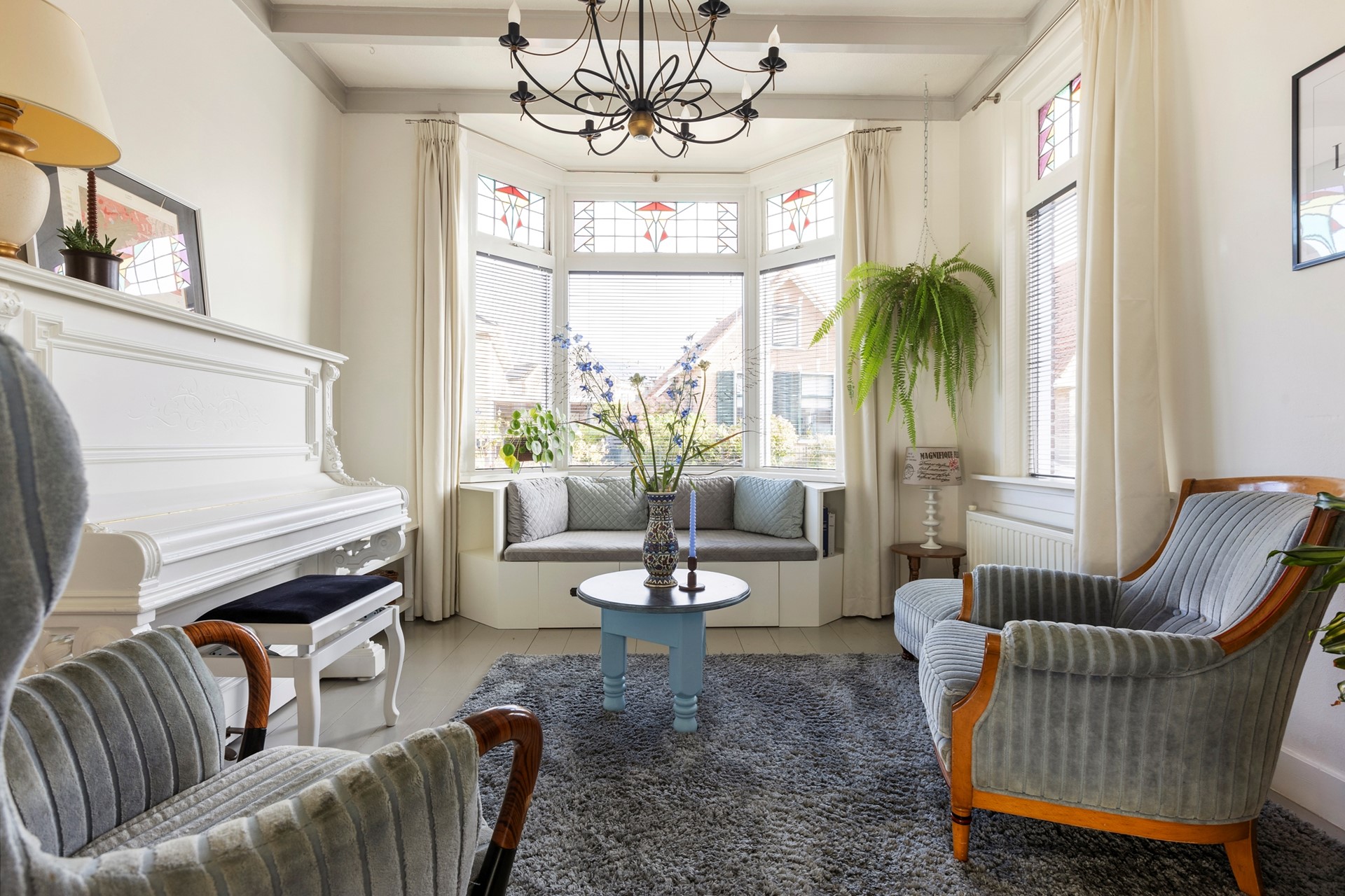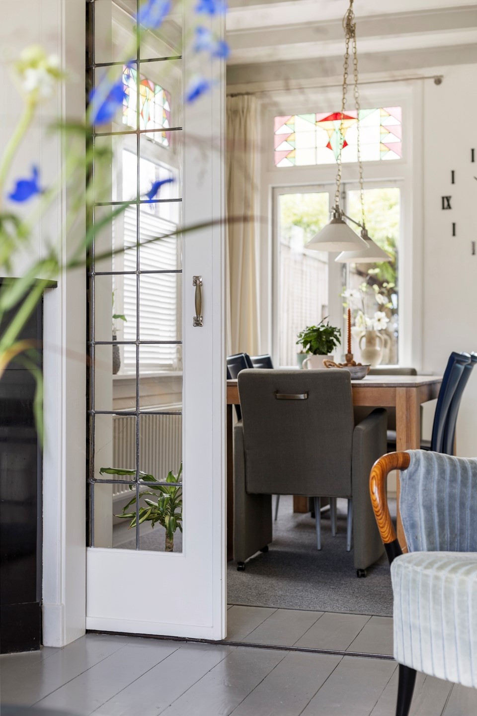 Via de voordeur kom je in de hal met toegang tot de sfeervolle woon- en eetkamer van circa 26 m² met houten vloer. Deze mooie ruimte is verdeeld door authentieke en-suite deuren waardoor de ruimtes van elkaar af te sluiten zijn. Er zijn nog veel meer sfeervolle jaren '30-elementen te vinden in het woongedeelte zoals de erker, het kleurrijke glas in lood en de schouwen. Vanuit de eetkamer loop je door naar de keuken van circa 9 m² met houten werkblad en voorzien van inbouwapparatuur zoals een inductiekookplaat en een vaatwasser. Ook is hier een handige kelderkast te vinden. Aansluitend bevinden zich een hal met de moderne en nette badkamer (2023) en het aparte toilet (2023). De badkamer is voorzien van een ligbad met douche, wastafelmeubel, designradiator en wasmachineaansluiting. Via deze hal is er toegang tot de tuin.