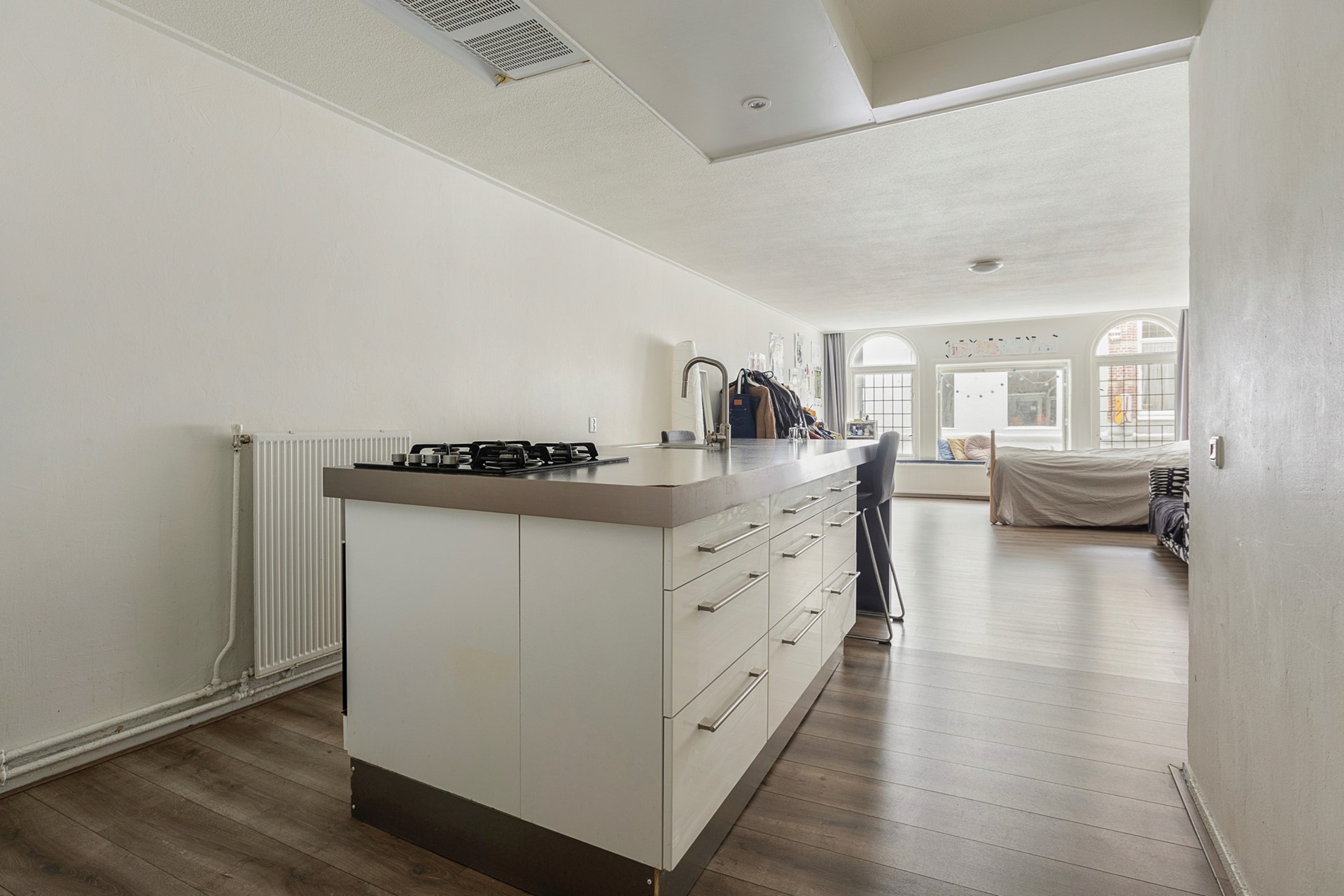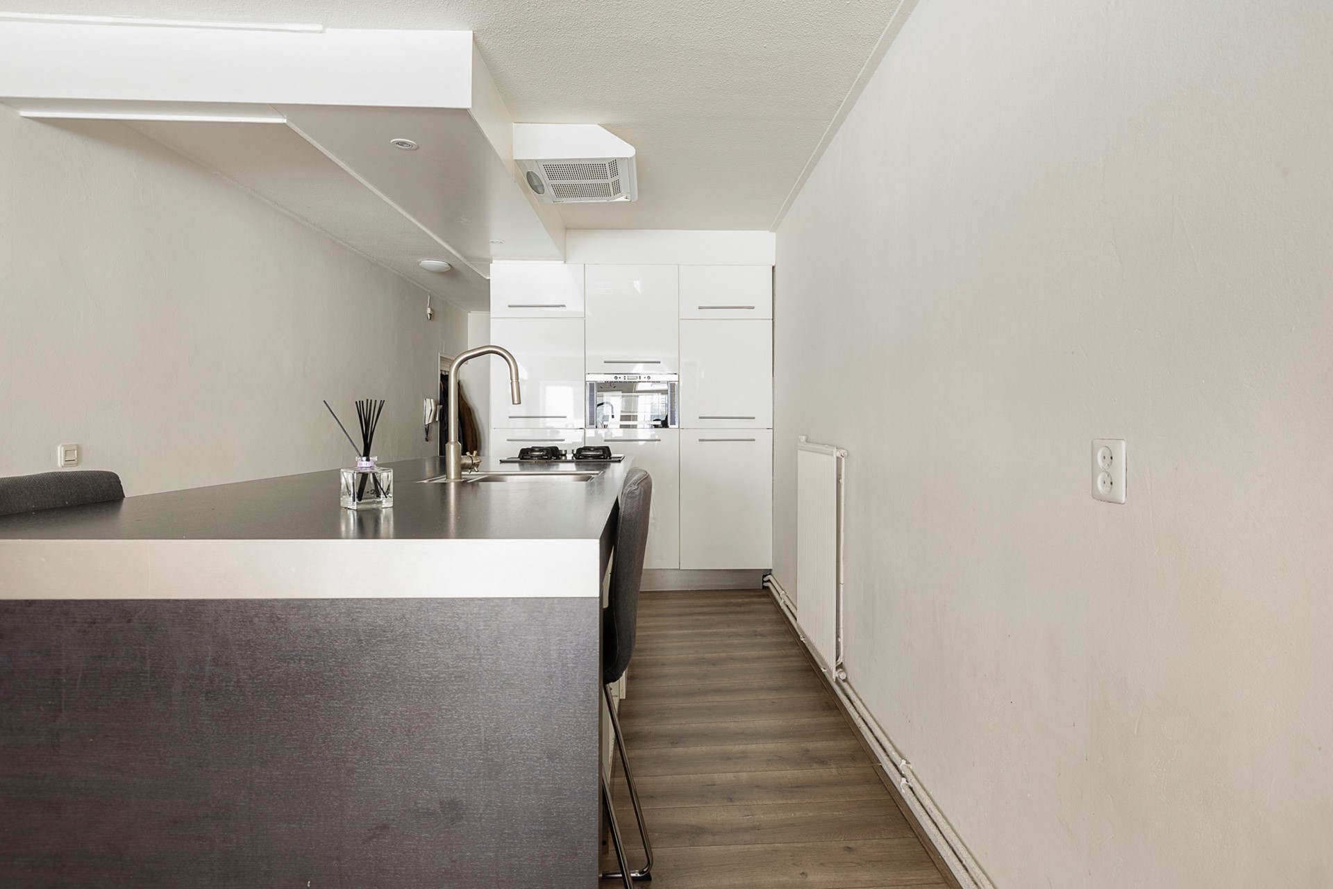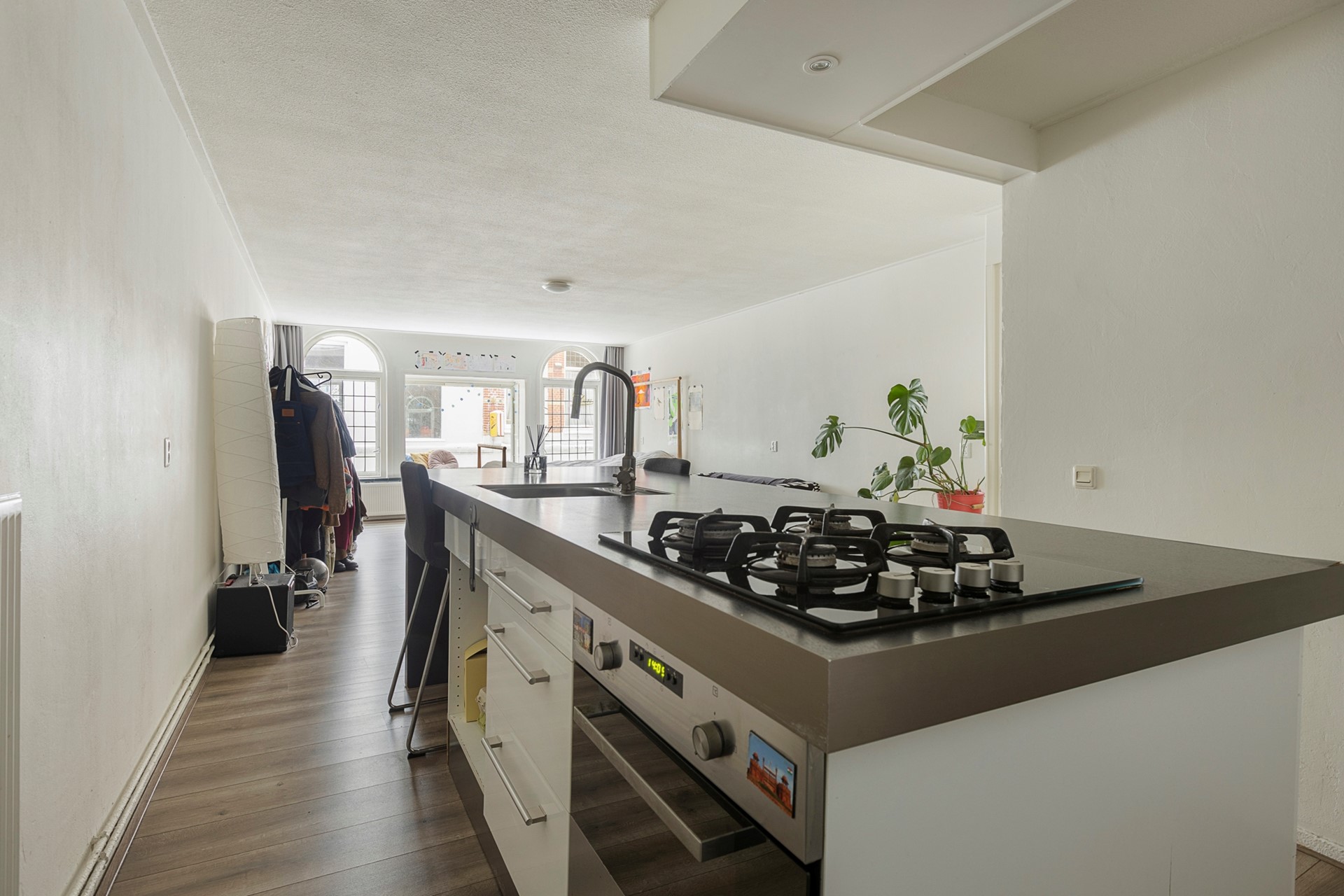 De woning ligt in een rustige zijstraat naast de Herestraat, de bekendste winkelstraat van Groningen, direct achter het Gedempte Zuiderdiep. Zo woon je midden in het centrum, maar zonder de drukte voor de deur. Alle voorzieningen zijn op loopafstand: boodschappen kun je doen bij de Jumbo of Albert Heijn om de hoek, en voor een etentje hoef je de straat nauwelijks uit. Van de Thaise tot Franse keuken, van snelle hap tot uitgebreid diner: rondom de woning vind je horecagelegenheden in overvloed!