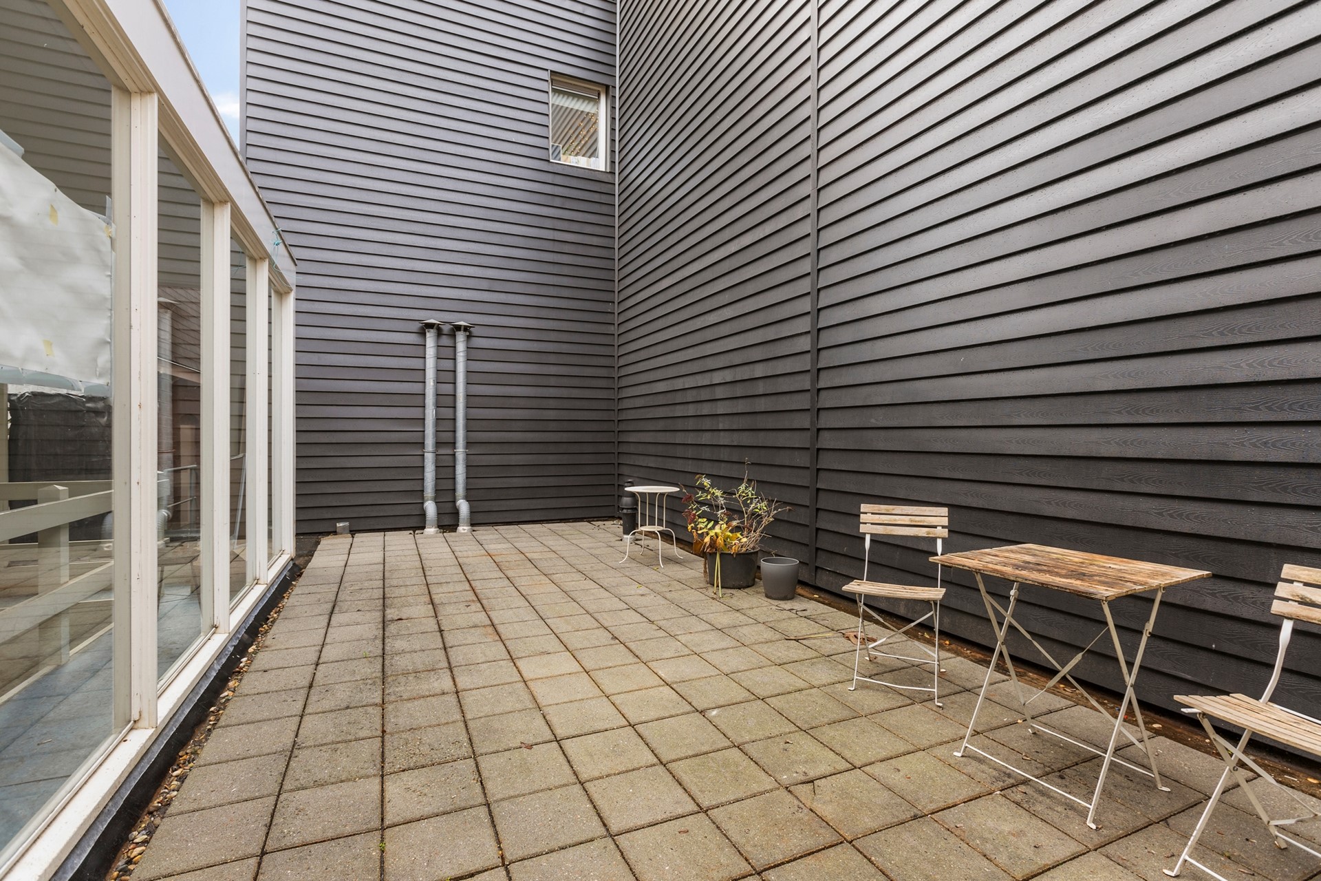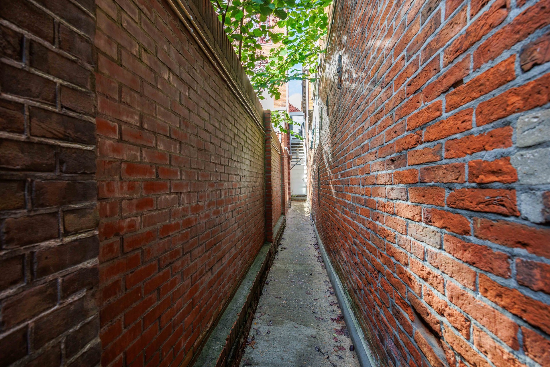 Via de gemeenschappelijke hal heb je toegang tot het gedeelde dakterras op de eerste verdieping, dat je slechts met één andere bewoner deelt.