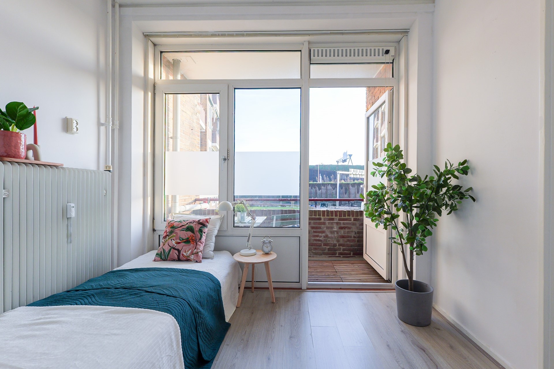 Het zonnige balkon op het zuiden is een heerlijke plek om te ontspannen en biedt voldoende ruimte voor een gezellig zitje.