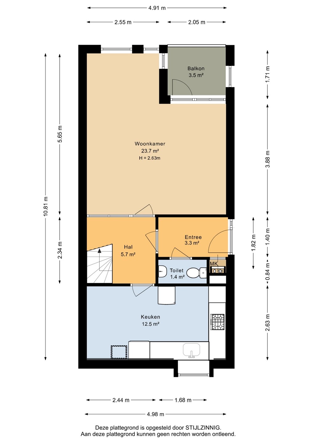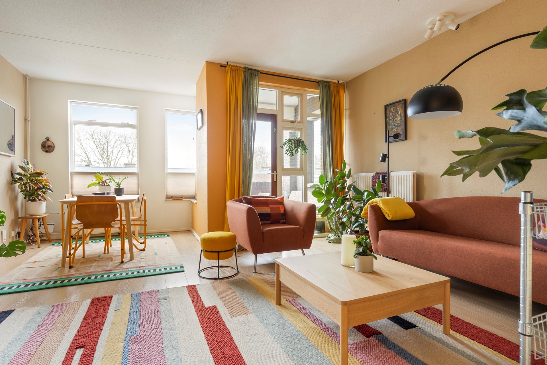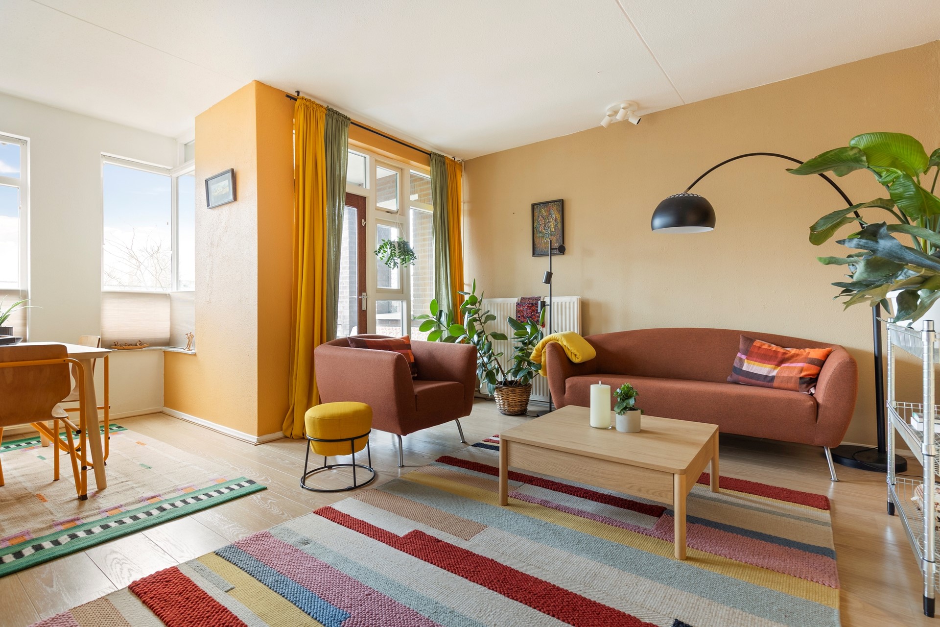 Via de gemeenschappelijke en afgesloten entree en trap bereik je de woning op de derde verdieping. Achter de voordeur kom je in de hal, met links het toilet en aan de rechterkant toegang tot de woonkamer. De woonkamer is circa 24 m² groot en biedt ruimte voor een aparte eethoek en gezellige zithoek. De woonkamer is voorzien van een nette laminaatvloer en het geeft toegang tot het balkon gelegen op het westen. In de zomer is dit een heerlijke plek om van de middag- en avondzon te genieten.