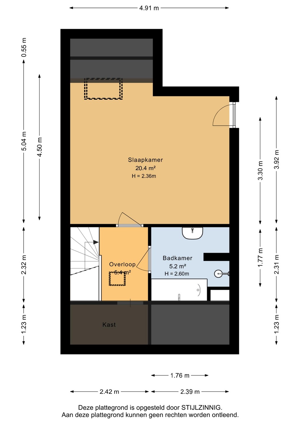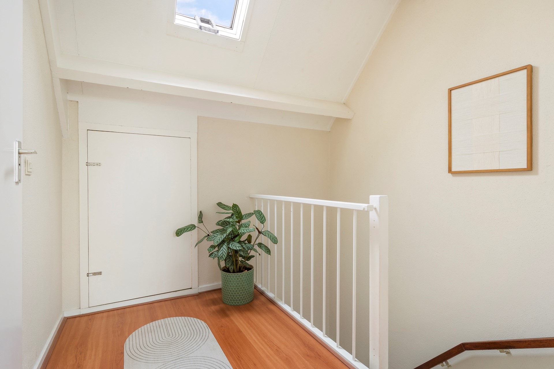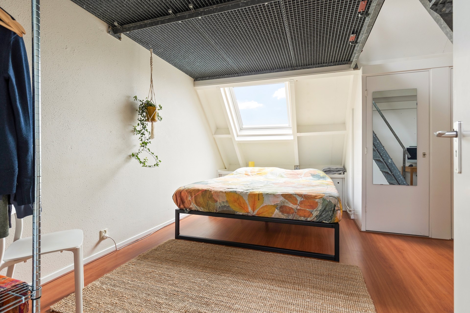 Via de trap in de hal bereik je de bovenverdieping. Vanaf de overloop kom je in de royale slaapkamer van circa 20 m². Het hoge plafond en de vaste trap naar de vide geven de ruimte een speels karakter. De vide is ideaal als werk-, hobby- of logeerruimte en kan ook dienen als tweede slaapkamer. Dankzij de inbouwkasten en knieschotten is er volop bergruimte in de slaapkamer te vinden.