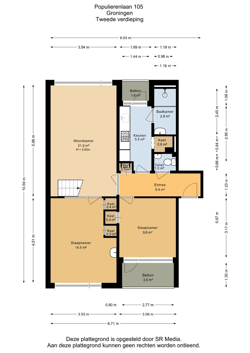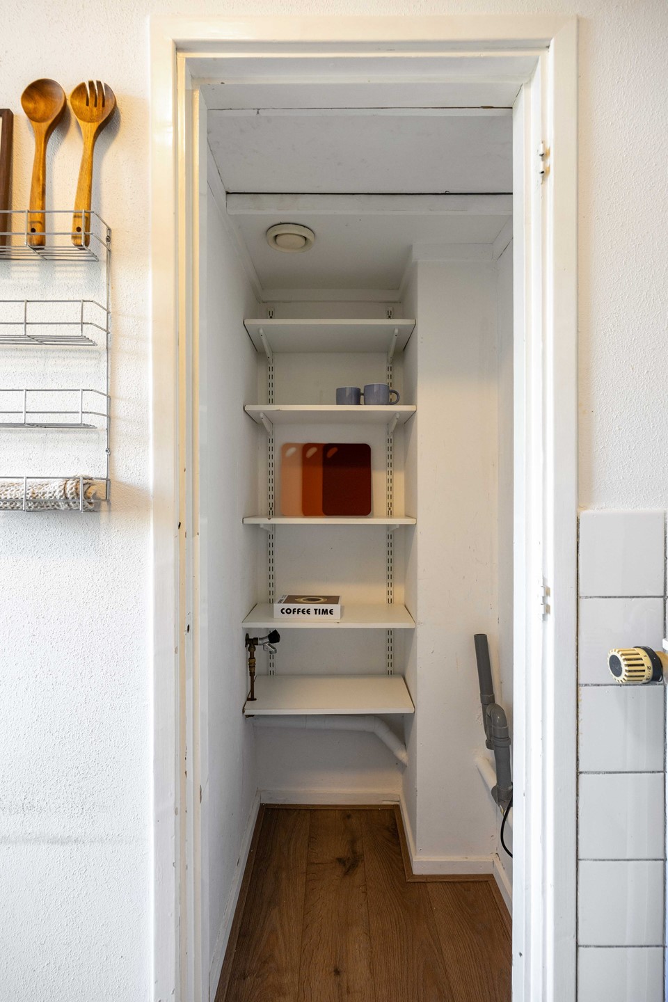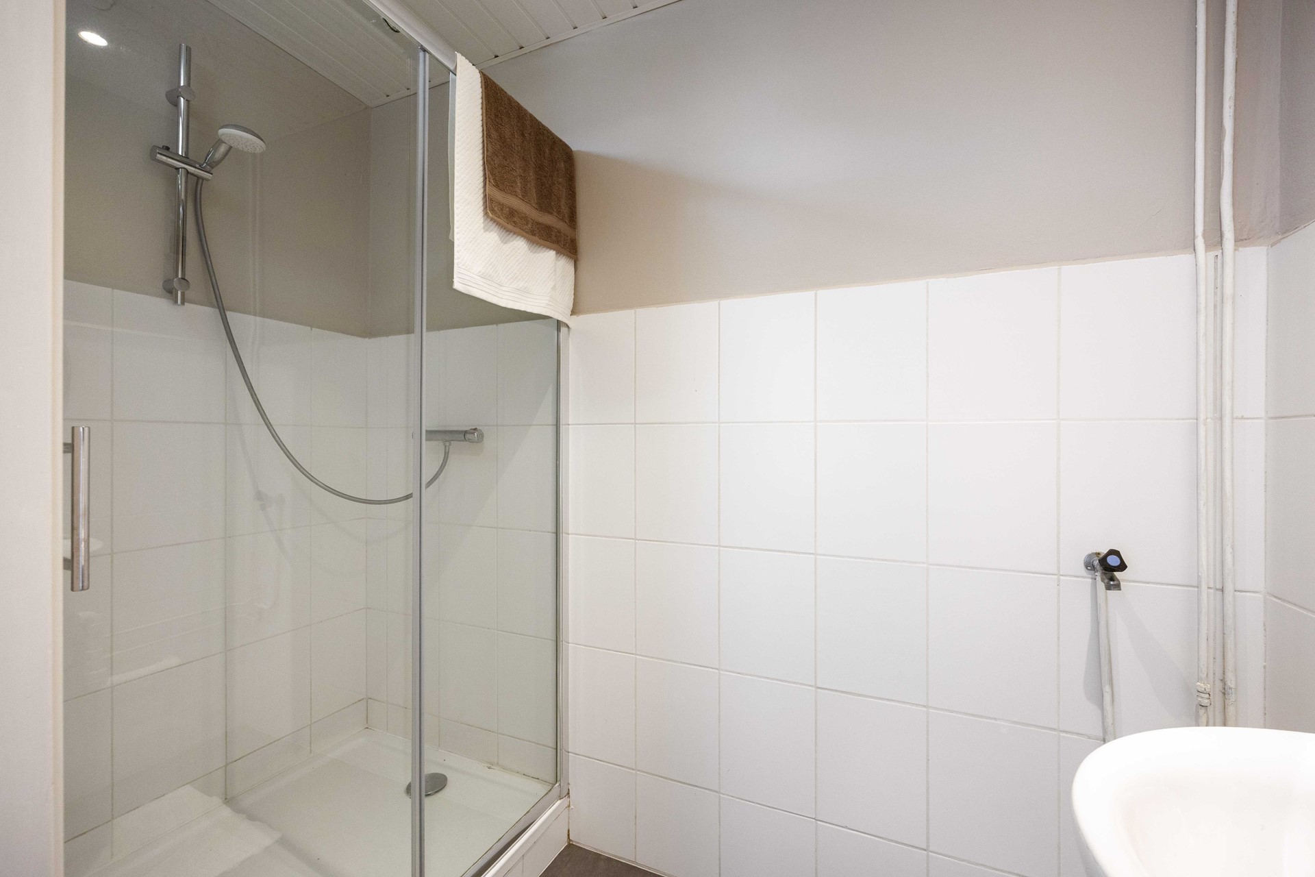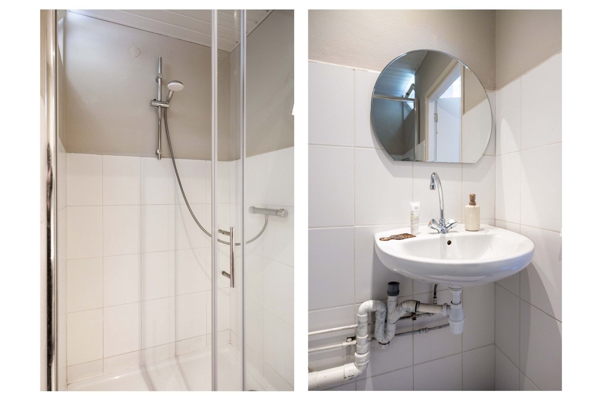 De woning heeft een afgesloten entree met intercom. Via het trappenhuis kom je op de tweede verdieping, waar het appartement ligt. Achter de voordeur kom je in de hal, die uitkomt in de woonkamer. Deze is ongeveer 21 m² groot en licht, met genoeg ruimte voor een comfortabele zithoek. Vanuit de woonkamer loop je door naar de eerste kamer van circa 15 m², die je ook prima als eetkamer kunt gebruiken of kan verbinden met de woonkamer zodat er één groot geheel is. De keuken ligt aan de hal en is zo’n 6 m² groot. Die is voorzien van een oven, vaatwasser, gaskookplaat, afzuigkap en koelkast. Vanuit hier stap je zo het eerste balkon op. Ook de badkamer is via de keuken bereikbaar en heeft een douche en wastafel. In de keuken zit daarnaast een handige, ruime voorraadkast.