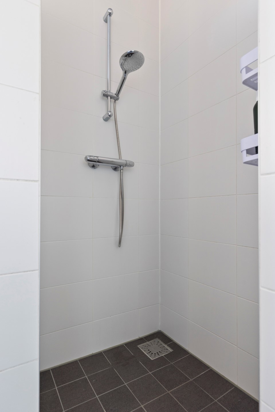 Via een vaste trap bereik je de tweede verdieping. Hier zijn nog twee slaapkamers van circa 19 en 10 m² aanwezig. De grootste slaapkamer is voorzien van een ruime inbouwkast en kan eenvoudig worden opgesplitst in twee aparte slaapkamers. Daarnaast bevindt zich op deze verdieping de badkamer met inloopdouche, wastafelmeubel en toilet. Tot slot is er een aparte wasruimte van circa 4 m² met aansluitingen voor de wasmachine en de cv-installatie.